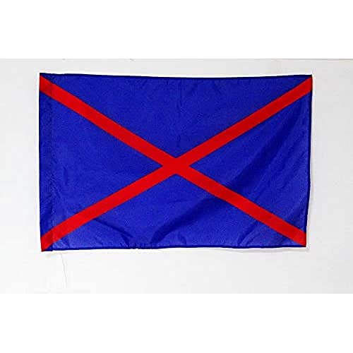 AZ FLAG Blå Karting flagga med två röda diagonaler 90 x 60 cm - kommissionärens flagga 60 x 90 cm stånghylsa