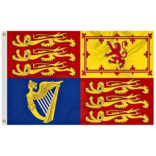 5Ft X 3Ft UK Royal Standard Flagga Kung Charles III Drottning Elizabeth ll Brittisk Royalty Polyester Armed Forces Militär Stor Premium Flagga