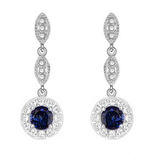 Crystalline Azuria Dinglande Örhängen Runda Blå Simulerad Safir Zirkoniumkristaller 18ct Vit Guldpläterad för Kvinnor
