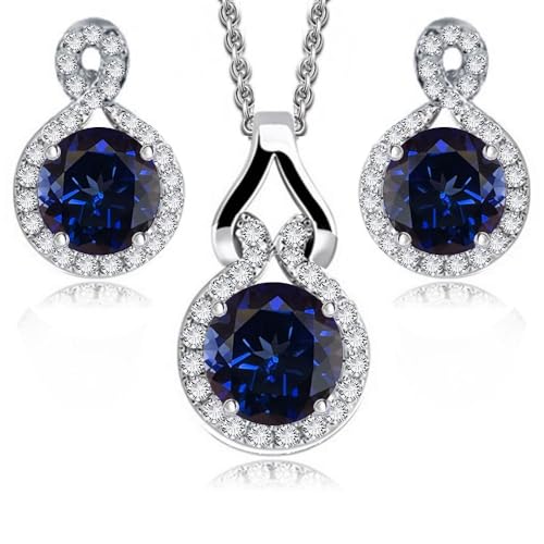 Crystalline Azuria Runda Blå Simulerad Safir Zirkoniumkristaller Smyckesset Uppsättning Hängsmycke Halsband Örhängen 18ct Vit Guldpläterad