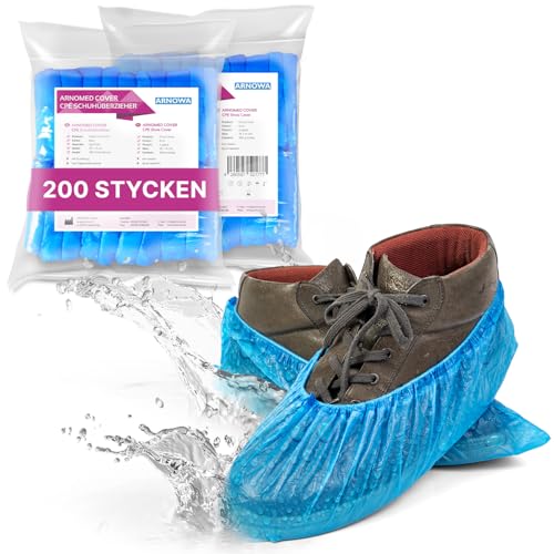 ARNOMED-skoskydd för engångsbruk, blå CPE-skoskydd 200 delar, överdragsskor för regnskydd, skoskydd vattentäta, latexfria överdragsskor för skor, skoskydd för byggarbetsplatser