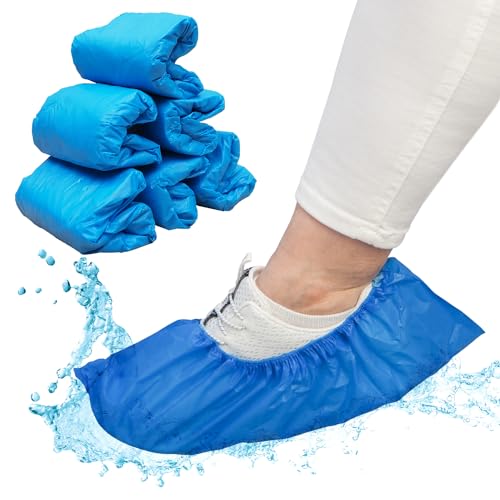 ARNOMED skoskydd engångsbruk extra starka, blå CPE överdragsskor, 100 stycken, överdragsskor för regnskydd, skoskydd vattentäta, latexfritt skoskydd, skoskydd för byggarbetsplatsen