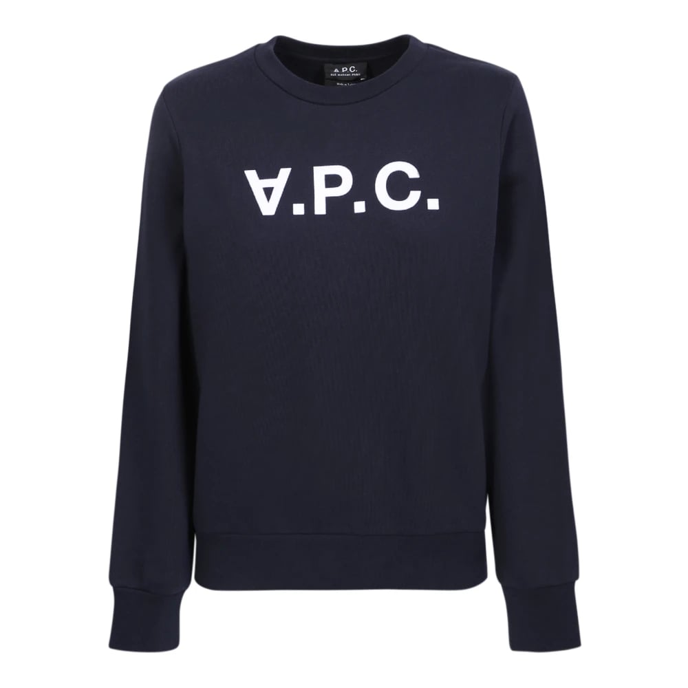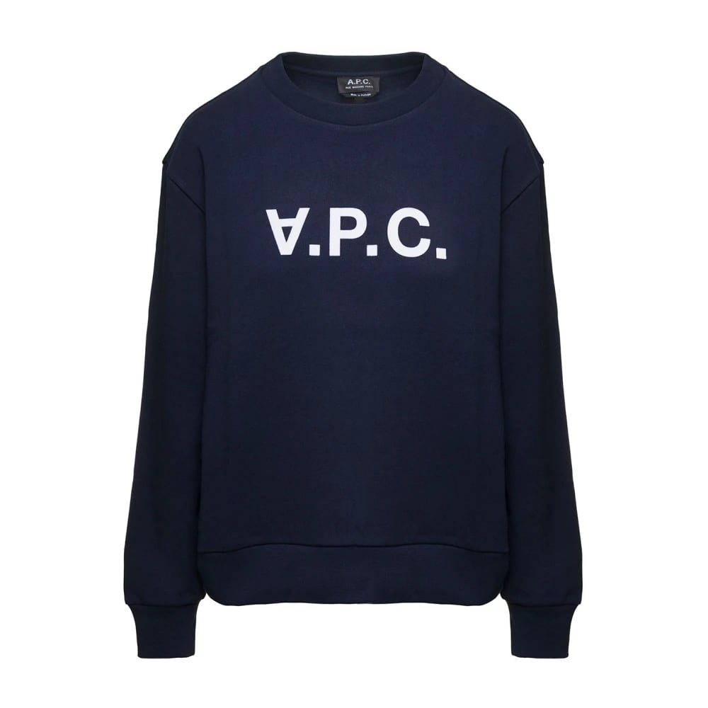 A.p.c., Sweatshirts & Hoodies , Dam, S, Bomull, Blå Crewneck Sweatshirt med Logotyptryck