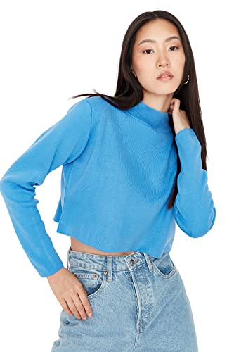 Trendyol Dam polokrage vanlig vanlig tröja sweatshirt, blå, S, BLÅ