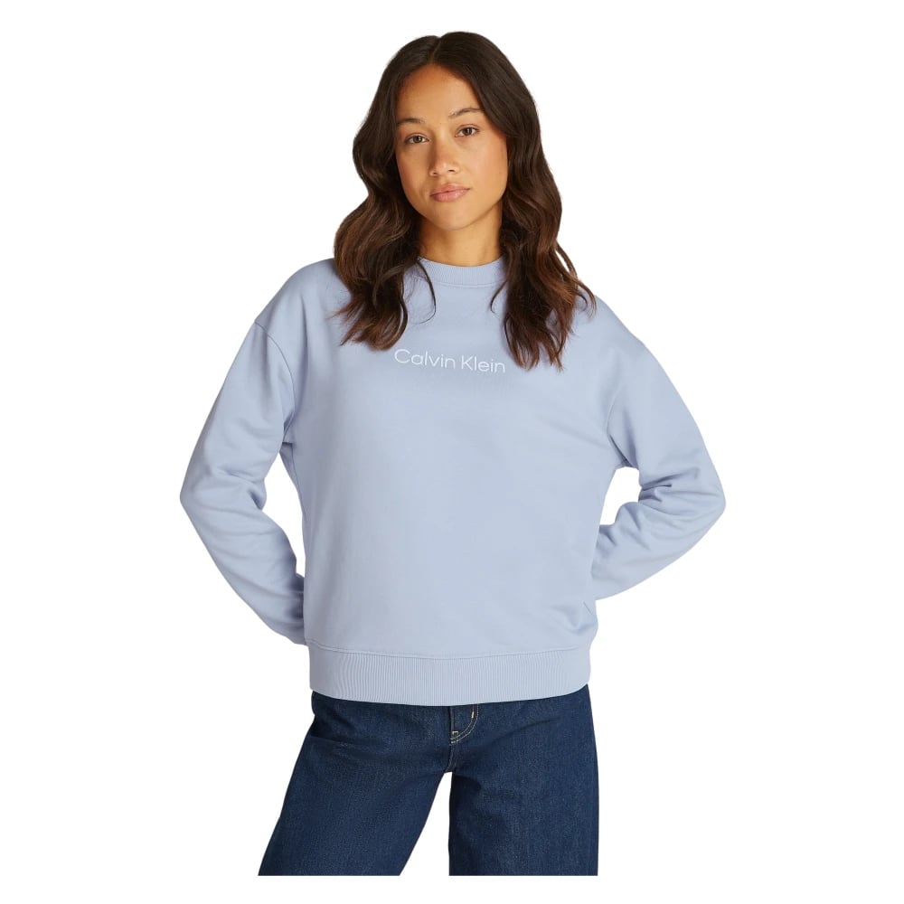 Calvin Klein, Sweatshirts & Hoodies , Dam, M, Bomull, Blå Logo Sweatshirt med Regenerativ Bomull
