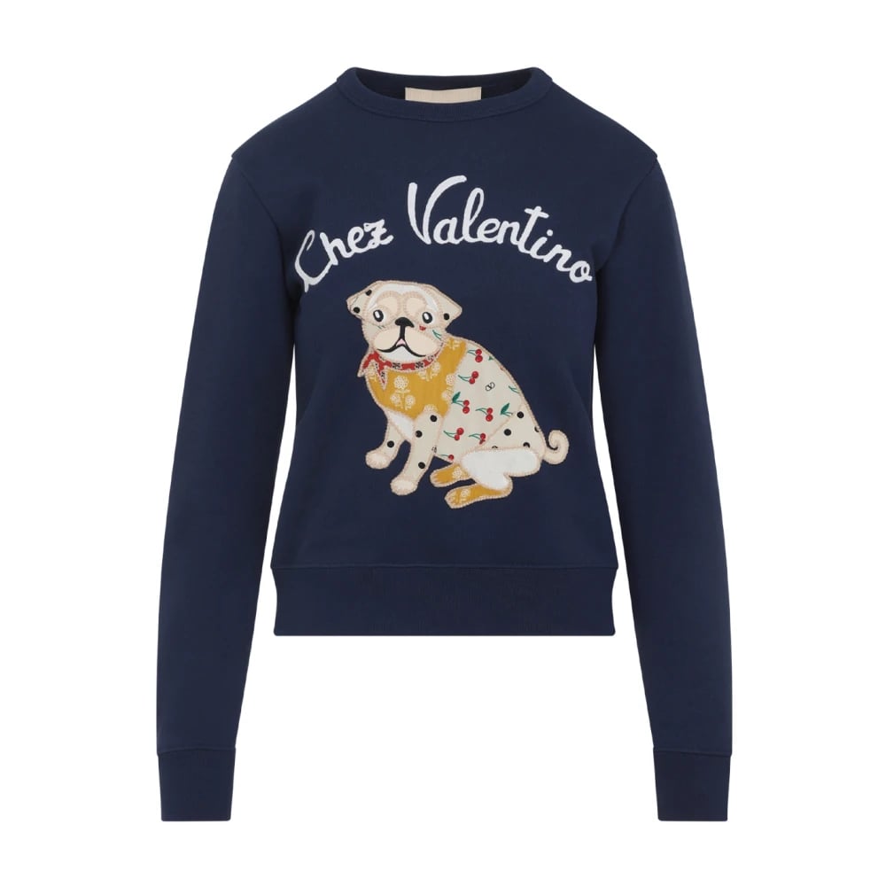 Valentino, Sweatshirts & Hoodies , Dam, S, Bomull, Blå Bomulls Sweatshirt Stilfulla Avslappnade Utflykter