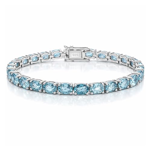 925 Sterling Silver Tennis Armband för Dam, Äkta Blå Topas Ädelstens Designers Bracelets, Mode Smycken Present Gift 7,5" Långd