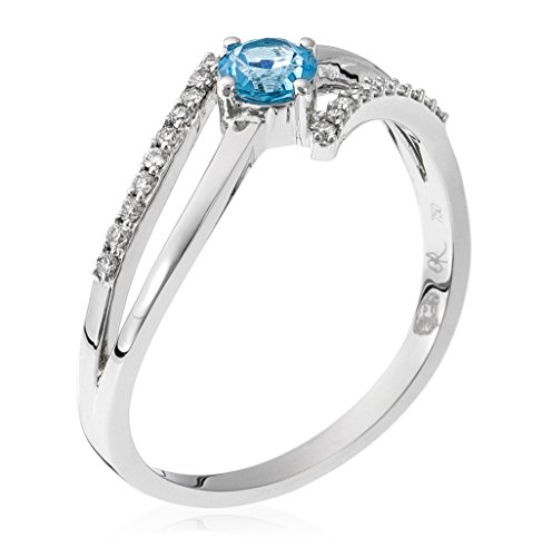 Orphelia damring 750 vitt guld rodium-pläterad topas blå rund slipning diamant (0,15 ct) – RD-3259/50 e Vitt guld, 60 (19,1), colore: Vit, cod. RD-3259/60