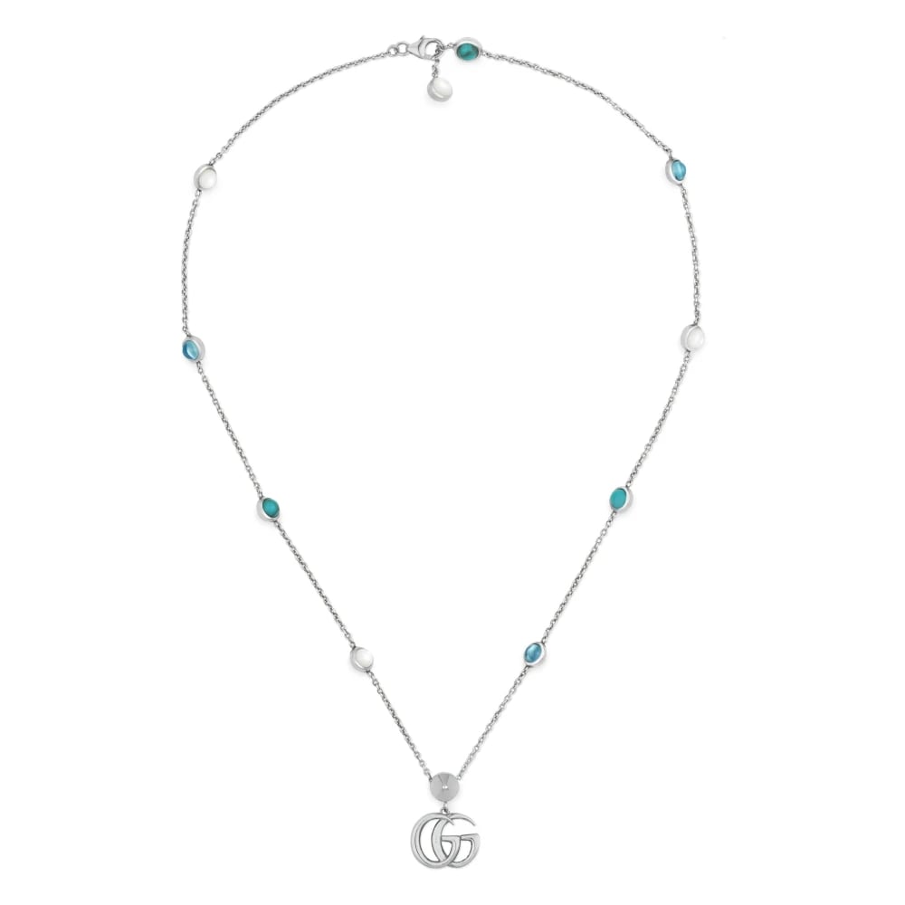 Gucci, Accessoarer , Dam, ONE Size, Ybb527399001 - Argento 925, Madreperla, Topazio, Resina - Halsband med Interlocking G hänge i blankt åldrat sterlingsilver, pärla, blå topas och turkos harts