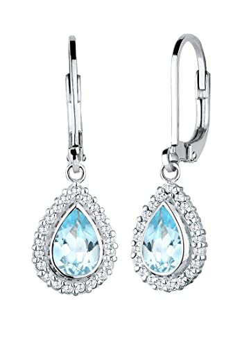Elli 0303390915 Droppörhängen för kvinnor Droppar 925 Sterling Silver Kubisk Zirkon Och Päronslipad Blå Topas -, Sterlingsilver, Topas Kubisk zirkonia