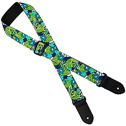 Perri's Leathers FWS15-7131 nylon ukulele rem - 1,5 tum, blå löv