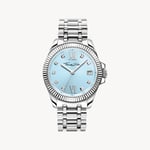 Damklocka Divine Blue med ljusblå urtavla och vita stenar silver