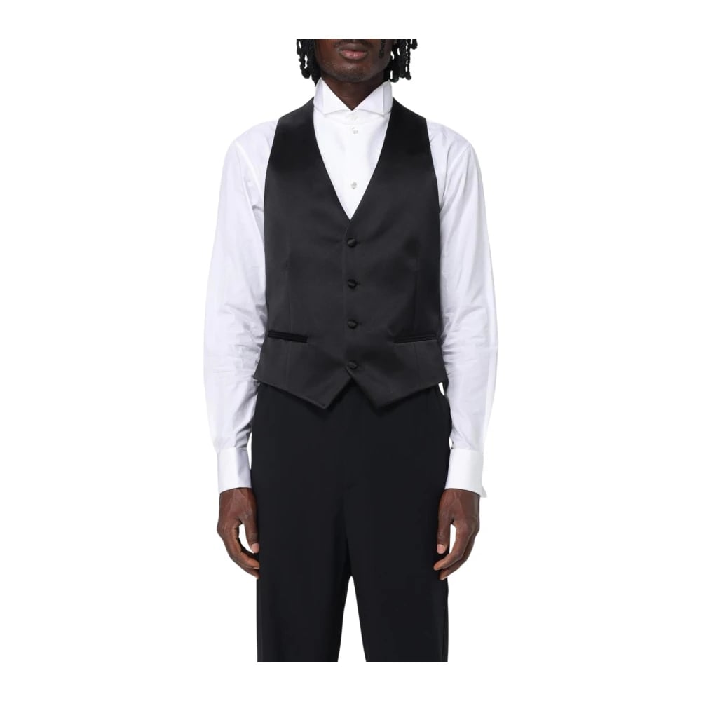 Emporio Armani, Kostymer , Herr, S, Blå Sidens Tuxedo Väst Slim Fit