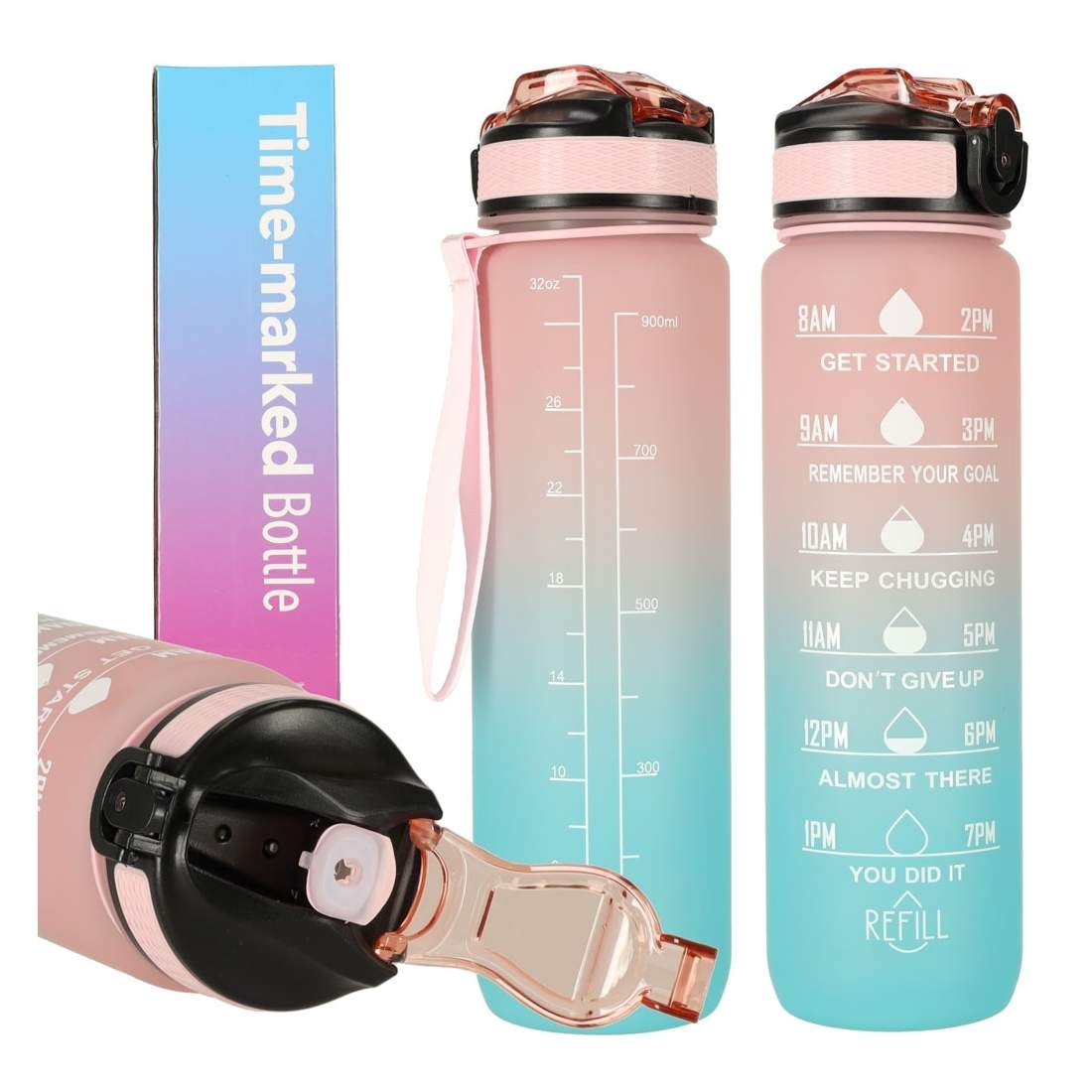 Rosa och Blå Vattenflaska 1L - Läckagesäker Design