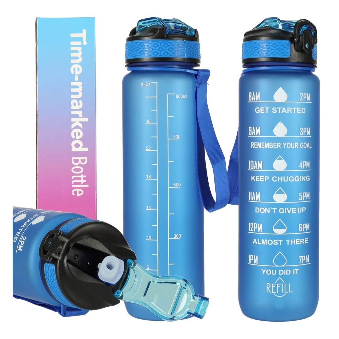 Iq Vie 720 Ml Blå Vattenflaska Med Sugrör Och Handtag