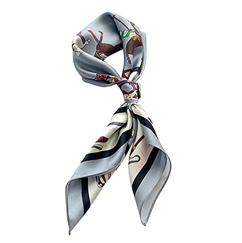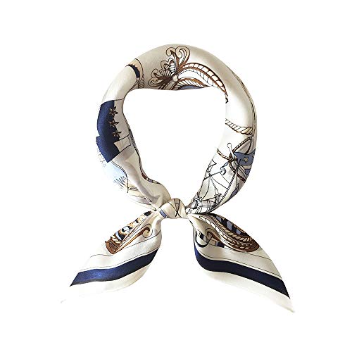 FONYVE Halsduk av 100% mullbärssilke, lätt, fyrkantig, satin, liten sidenhårscarf att sova, 53,3 x 53,3 cm, 44 Navigation vit & blå, S
