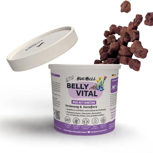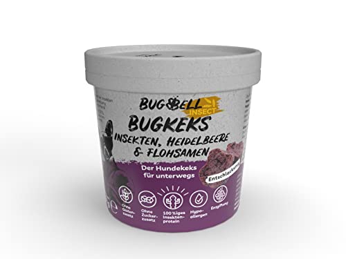 BugBell 8 x 150 g hundkex, hälsosamt godis med funktion, utan spannmål, utan socker, allergivänliga, blåbär och loppfrön & probiotika för avgiftning och avgiftning, purinfattigt insektprotein