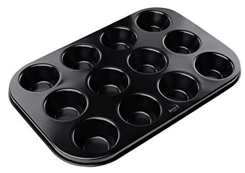 Dr. Oetker - Söt eller salt muffin/cup cake mögel, Tradition, hög tjock aluminiumbelagd med non-stick (Färg: Svart), mängd: 1 Pite.
