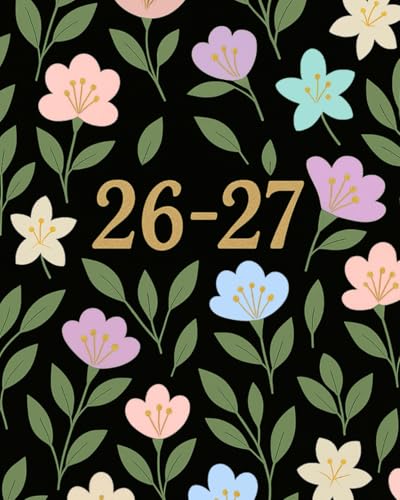 Floral Monthly Planner 2026-2027: Pastel Botanical on Black ~ Cute Whimsical Calendar for Women, 2026 - 2027 Organizer, Two Year 26, 27 Large 8 x 10