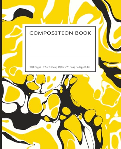 Bold Yellow Abstract Composition Book | 200 Pages | 7.5 x 9.25 in | 19,05 x23,5 cm | College Ruled: Vibrant Black and Yellow Marbled Cover – Includes ... Calendar, To-do List, Expenses & Notes Pages