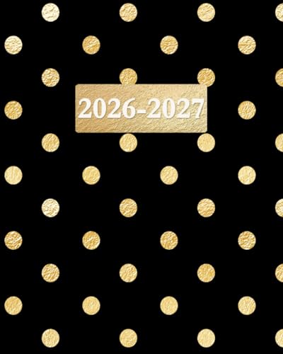 Polka Dots Monthly Planner 2026-2027: Black and Gold Calendar for Women, 2026 - 2027 Large 8 x 10, 2 Year 26, 27 Cute Agenda Book