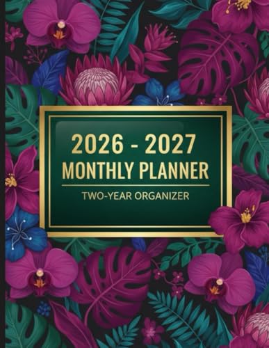2026-2027 Monthly Planner Hardcover: 2 Year Calendar from January 26 to December 27 - Two Pages per Month || 24 Months Schedule Organizer with ... Quotes || Large Size - Black Cover