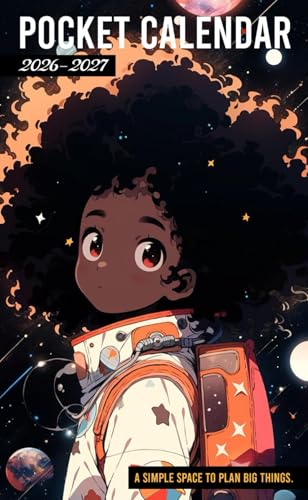 Pocket Calendar 2026-2027: Small 2-Year Planner with Motivational Quotes, Monthly Grids, and Portable Size in Afrofuturist Astronaut Cute Black Kid Cover