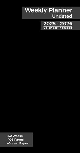 Weekly Planner Undated Notebook for Travelers with 2025-2026 Calendar Black Cover: 52 Weeks, Standard Size 8.27 x 4.33 Inches (210 x 110 mm), Cream Paper, 108 Pages