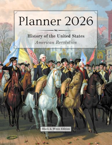 2026 Planner - Monthly & Weekly - 8.5 x 11 in (black & white) - US History: American Revolution: Calendar, Holidays, Contacts, Reminders, Notes, ... Quotes, Biographies & Pivot Events