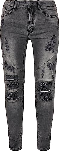 QIMYUM Mens Ripped Jeans, Distressed Destroyed Slim Fit Straight Leg Denim Pants (34, Black702)