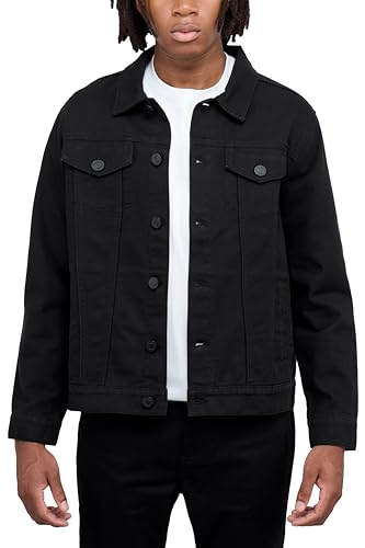 X RAY Mens Denim Jacket, Washed Ripped Distressed Flex Stretch Casual Trucker Biker Jeans Jacket for Men, Black, X-Large