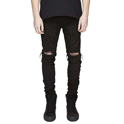LONGBIDA Men's Slim Fit Ripped Stretch Skinny Jeans for Men, Distressed Tapered Leg Fashion Pants, Black, 28
