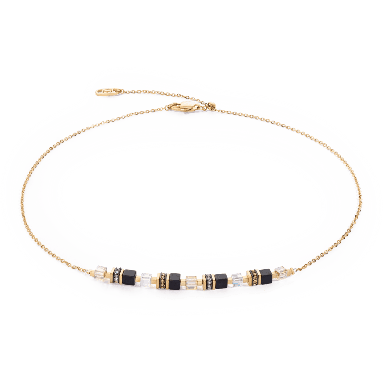 Coeur de Lion Halsband Mini Cubes & Chain guld-svart