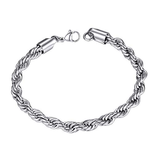 ChainsHouse rostfritt stål kedja armband för män kvinnor unisex polerade smycken svart/18 K guldpläterad 3/6/9/10/12 mm bred 19 cm/21 cm längd Miami länk armband e rostfritt stål, colore: 06.twisted Rope Chain-stainless(6mm), cod. CHH18007G-6-21-CHEU