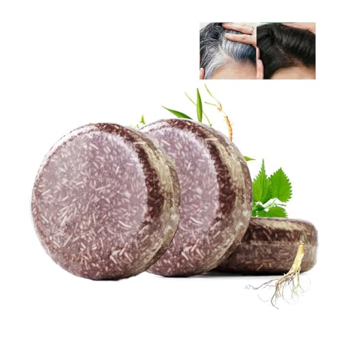 Hair Darkening Shampoo Bar, Grey Reverse Shampoo Bar, Grey Hair Darkening Shampoo, Man Grey Coverage Bar Shampoo, Multiflorum for Hair Repair, Black Soap for Men And Woman Grey Hair (3PCS)