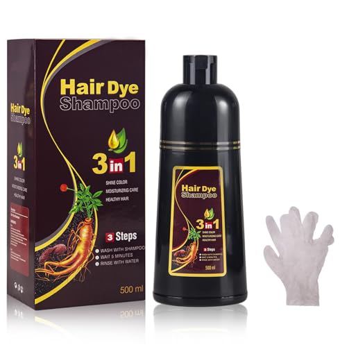 Hair Dye Shampoo 3-i-1, 500 ml Hårfärgsschampo mot Grått Hår, Hårfärg Schampo för Män och Kvinnor, Omedelbar Hårfärg på Minuter (Black)