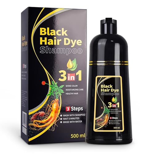 Hair Dye Shampoo 3-i-1, 500 ml Hårfärgsschampo mot Grått Hår, Svart Hårfärg Schampo för Män och Kvinnor, Omedelbar Hårfärg på Minuter, Färgningsschampo med Naturliga Ingredienser (svart)