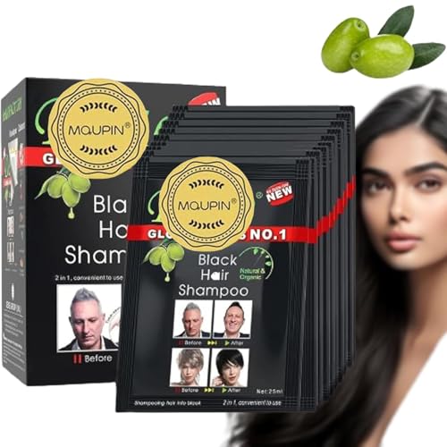 Instant Black Hair Shampoo, MQUPIN hårschampo omedelbar 3-i-1 hårfärg för män och kvinnor svarta naturliga ingredienser, lätt att använda, hållbar hårfärg (10 stycken)