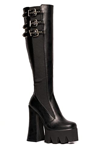 LAMODA - Ja Boss Knee High Platform Boots, EU 37, Svart PU, 37 EU