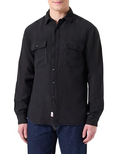 Replay herr regular fit linneskjorta, 098 svart, XXL