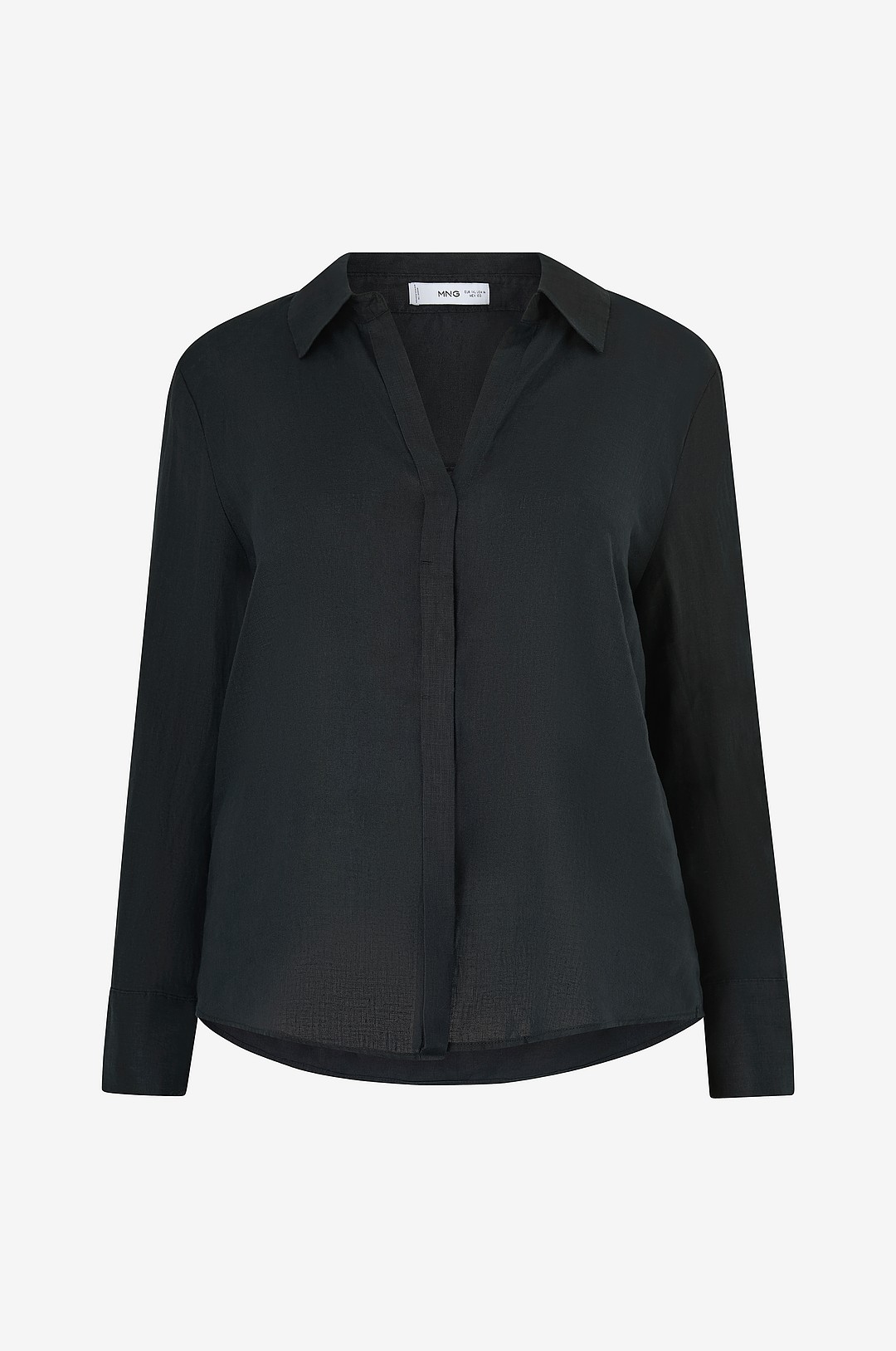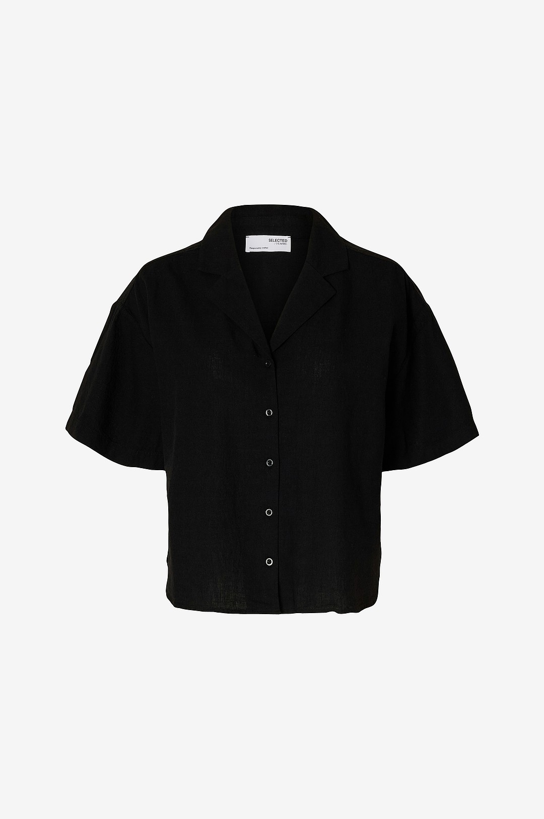 Selected FEMME - Linneskjorta slfLuisa 2/4 Linen Blend Revers - Svart