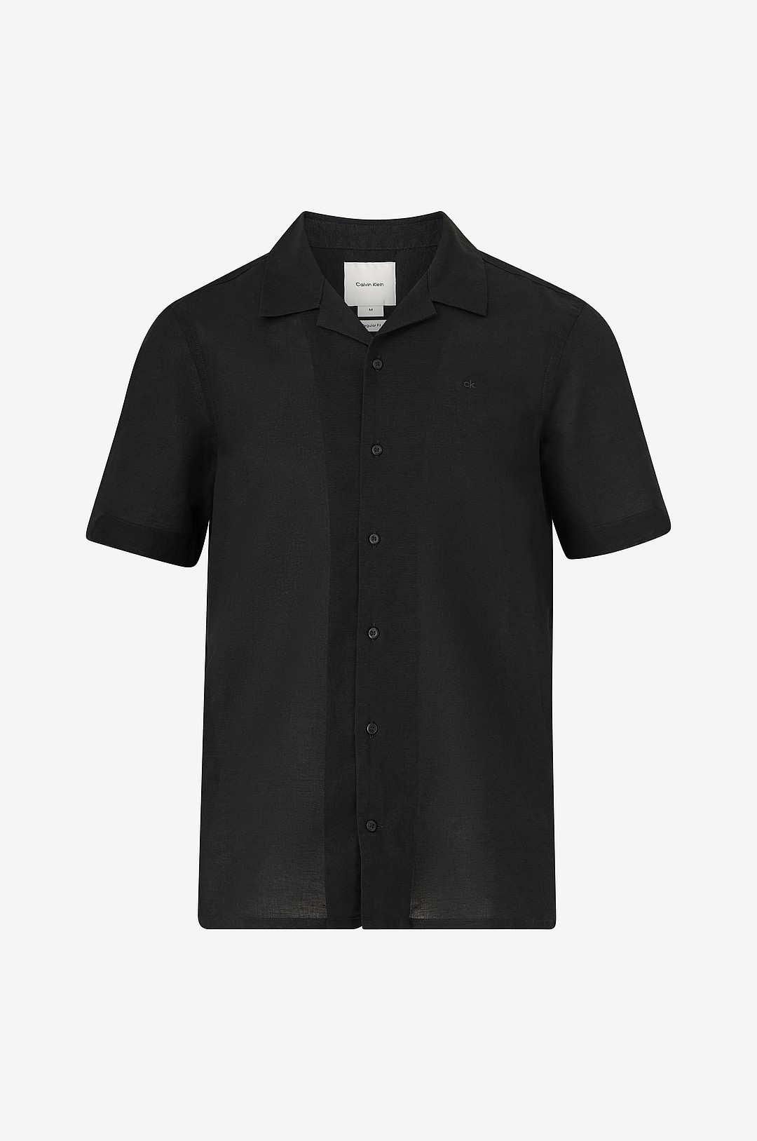 Calvin Klein - Linneskjorta Linen Cotton Cuban S/S Shirt - Svart