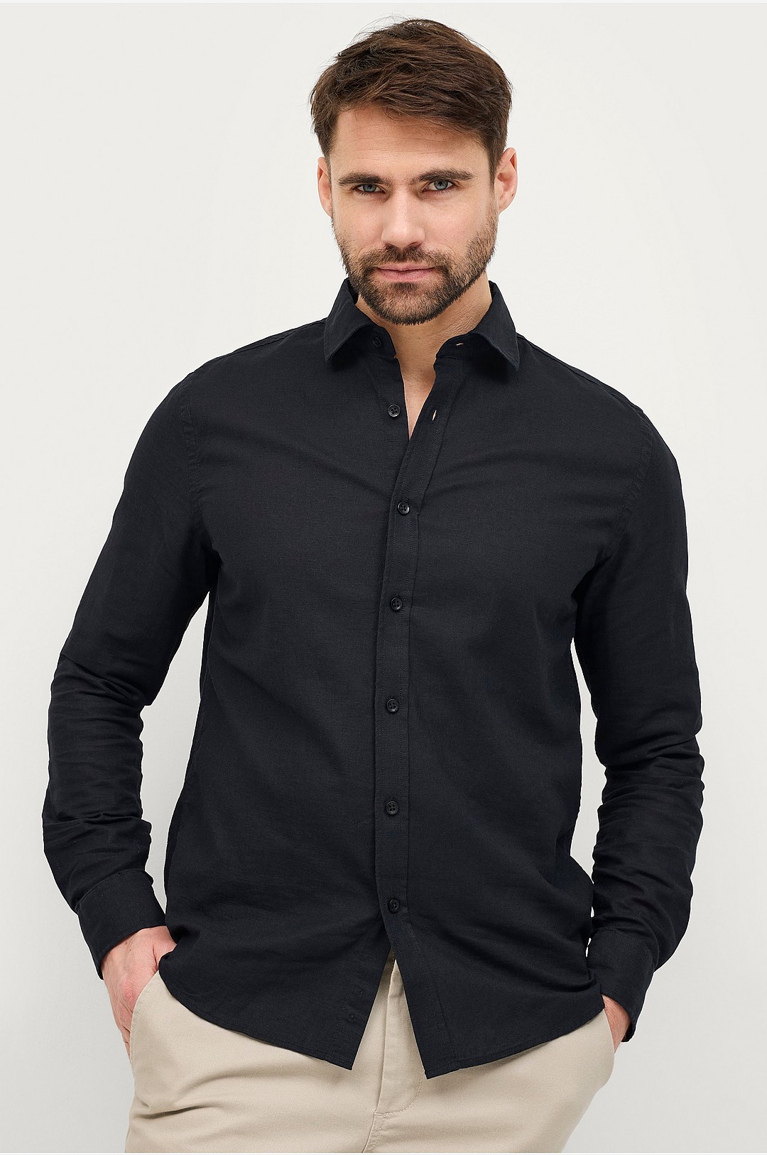Friptspyg Herr linneskjorta bomull långärmad normal passform casual strandskjorta normal passform skjortor sommar, svart, L