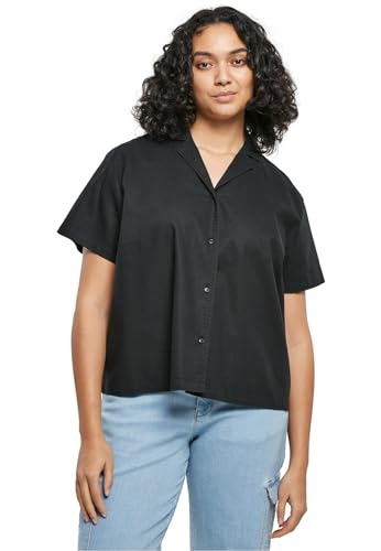 Urban Classics Ladies Linen Mixed Resort Shirt, Resort linneskjorta för kvinnor, finns i många olika färger, storlekar XS – 5XL, svart, XS