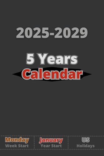 5 Years Calendar Monthly Planner: Year Starting January to December - Week Starting Monday to Sunday - With Holidays - Medium Size 6x9" - Elegant Dark Black Cover Design