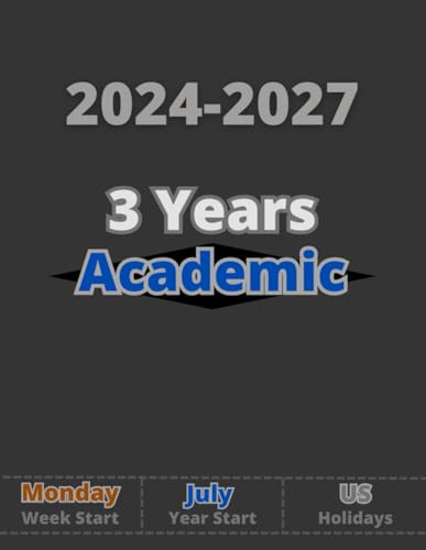 3 Years Academic Calendar Monthly Planner: Year Starting July to June - Week Starting Monday to Sunday - With Holidays - Letter Size 8.5x11" - Elegant Dark Black Cover Design