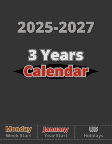 3 Years Calendar Monthly Planner: Year Starting January to December - Week Starting Monday to Sunday - With Holidays - Letter Size 8.5x11" - Elegant Dark Black Cover Design
