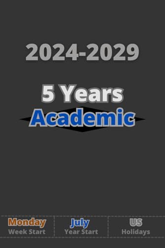 5 Years Academic Calendar Monthly Planner: Year Starting July to June - Week Starting Monday to Sunday - With Holidays - Medium Size 6x9" - Elegant Dark Black Cover Design.