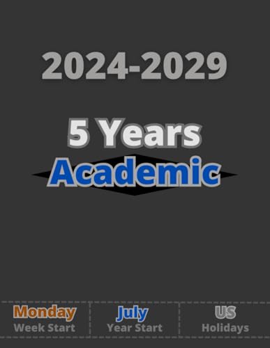 5 Years Academic Calendar Monthly Planner: Year Starting July to June - Week Starting Monday to Sunday - With Holidays - Letter Size 8.5x11" - Elegant Dark Black Cover Design.