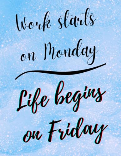 Work Starts On Monday, Life Begins On Friday - Motivational & Inspirational Quote NOTEBOOK - Striking Shimmery Soft Blue Art Design with Elegant Black ... men, teens, students and young professionals